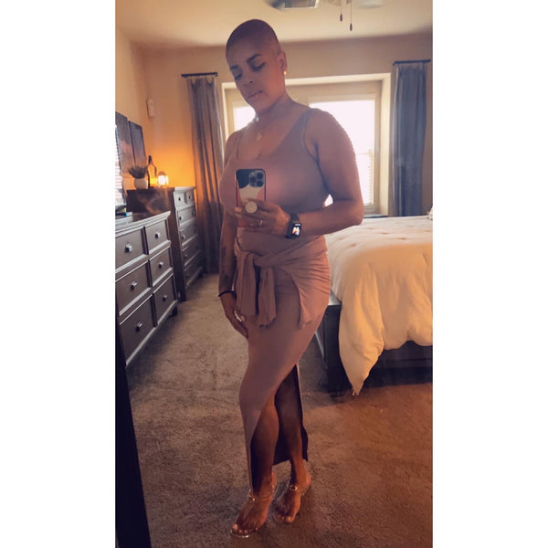 Made In U.S.A S.M.LSlouchy Crop Cape Top Tank Dress(2pc set) 95% Rayon 5% Spandex Olive MIS