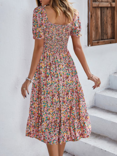 Bohemia Floral Puff Sleeve Flounce Sleeve Dress