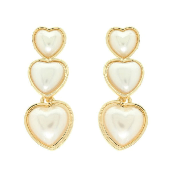 Playful yet polished, these multi-tiered heart earrings feature bezel pearl and enamel accents in a charming linear design. Lightweight and glossy, they add a romantic touch to bridal showers, Valentine's celebrations, or everyday love-inspired style. The tiered shape delivers movement and shine, while the heart motif keeps it sweet and feminine.
