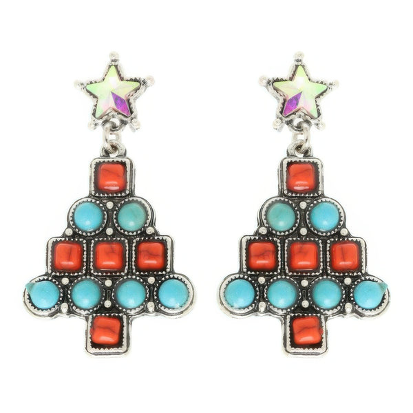 Bring western-inspired charm to your holiday look with these Christmas tree post earrings. Available in crystal or turquoise styles, they combine festive sparkle with cowgirl flair. Lightweight and easy to wear, they’re perfect for holiday parties, gift exchanges, or seasonal gatherings. A fun and stylish piece, these earrings make a thoughtful gift for anyone who loves western accessories.