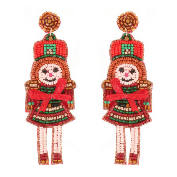 Step into the holiday spirit with these colorful nutcracker dame earrings, thoughtfully handcrafted with festive seed bead detailing. A bold seasonal statement, these post dangles combine holiday tradition with modern charm. Lightweight yet impactful, they add a cheerful pop to winter outfits and are perfect for themed parties or festive family gatherings. Designed to celebrate the season’s joy and elegance, they make a standout gift or a dazzling addition to your own jewelry collection. Elevate your holiday look with a touch of nostalgic whimsy.