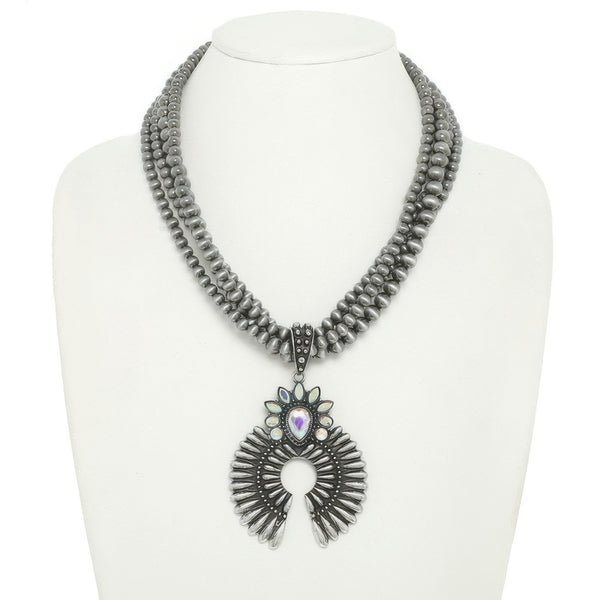 • Multi-layer beaded necklace with crystal squash blossom pendant