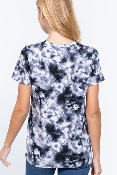 Imported S.M.L SHORT SLV TIE-DYE COTTON JERSEY TOP 95% Polyester 5% Spandex Aqua Blue ACT