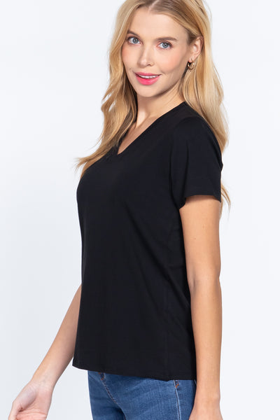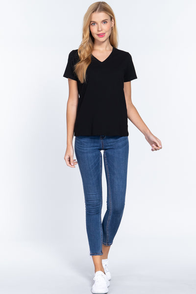Imported S.M.L SHORT SLEEVE V-NECK BOXY TEE 95% Cotton 5% Spandex Black ACT