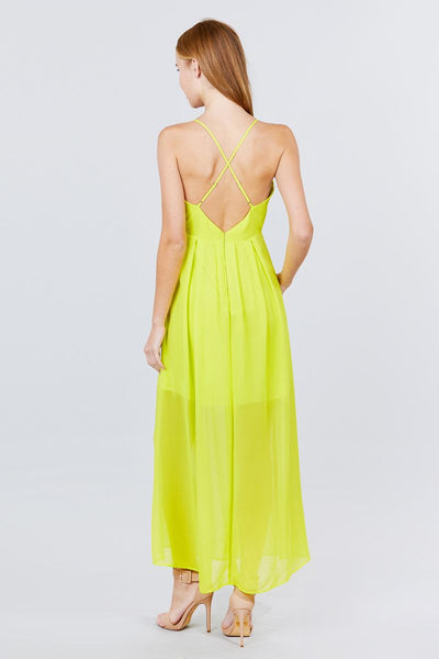 Imported S.M.L.V-NECK CROSS BACK STRAP DETAIL MAXI CAMI DRESS100% Polyester Coral PinkACT