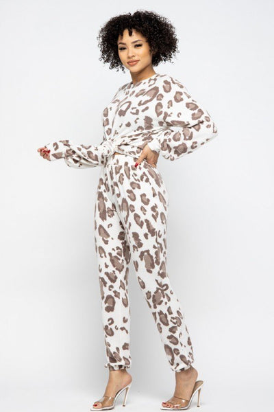 Brushed Animal Long Sleeve Loose Top W Sweatpants Set