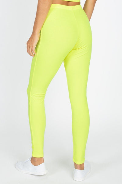 Imported S.M.L Medium weight stretch knit. Full length. Solid 95% Polyester 5% Spandex Neon Yellow CLA