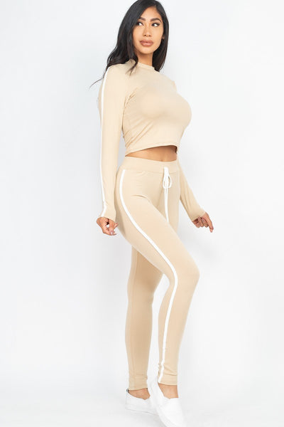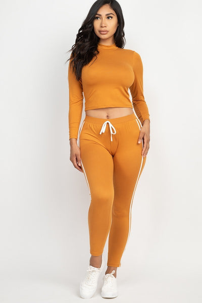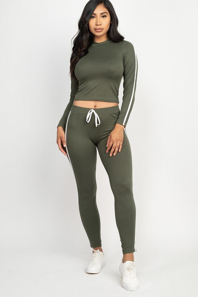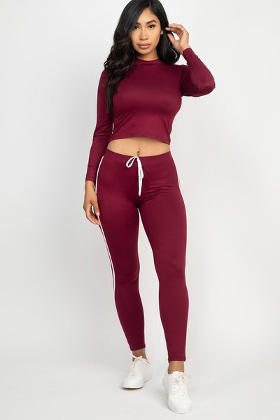 Side Striped Crop Top And Leggings Set