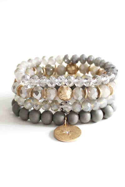 Imported CRYSTAL WOOD BEAD STRETCH BRACELET SET Black.Brown.Grey.Nude.Rose.White.Wine FBJ