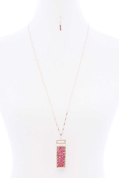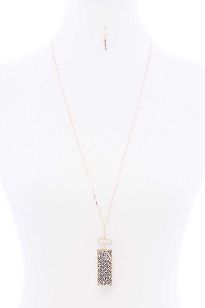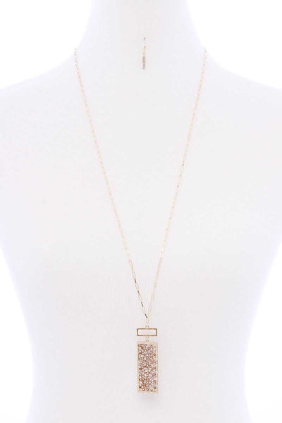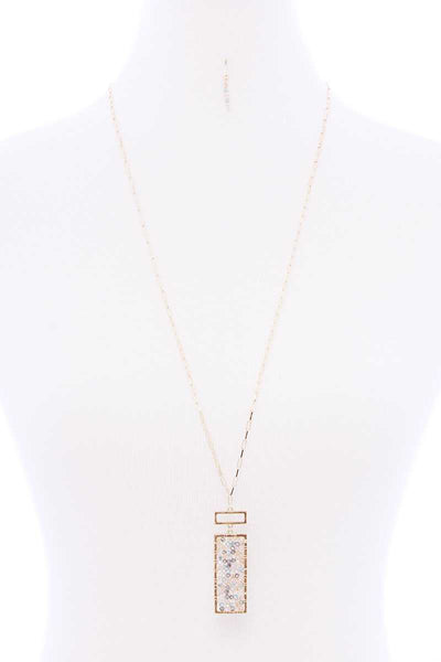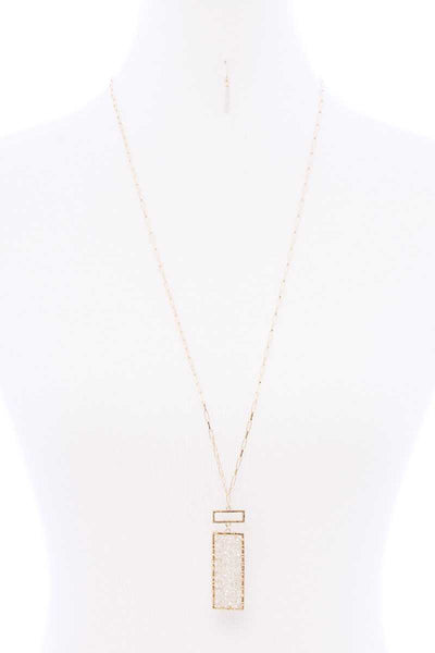 RECTANGLE GLASS BEAD PENDANT LONG NECKLACE