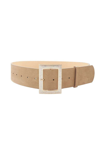 RECTANGLE RHINESTONE BUCKLE SUEDE BELT