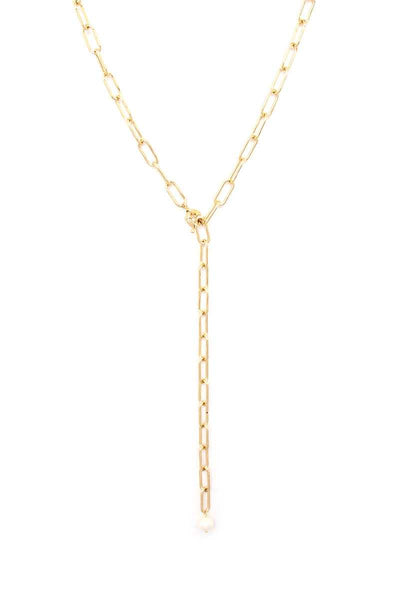 Imported METAL CHAIN Y NECK PEARL DANGLE NECKLACE Gold FBJ