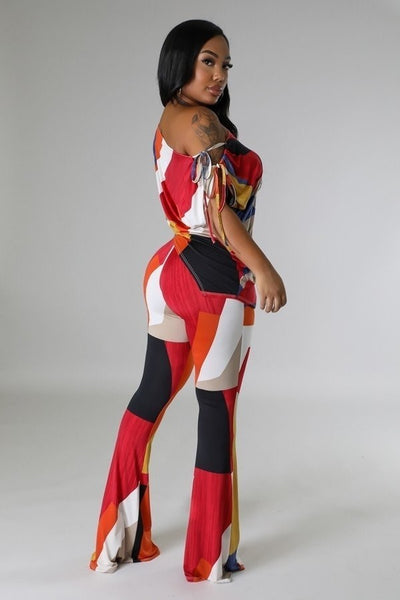 Elevate your style with our Two-Piece Off-Shoulder Set in Multi, a chic and comfortable ensemble that effortlessly combines trendy design with a vibrant color palette. This set features an off-shoulder top with short sleeves, a self-tie detail, and high-waisted pants with an elastic waistband, ensuring a flattering and fashionable look. With no closure, it provides ease of wear for a seamless and stylish outfit.