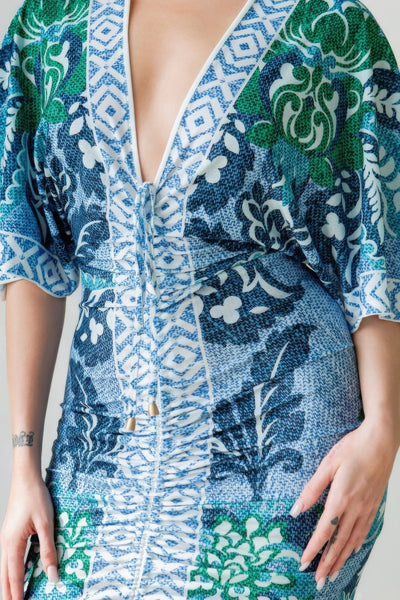 Elevate your style with our Front Ruched V-Neck Midi Dress in Blue. Add it to your cart now and experience the perfect blend of fashion and comfort!