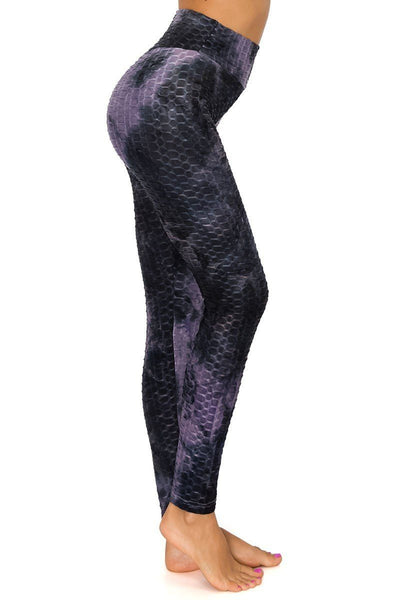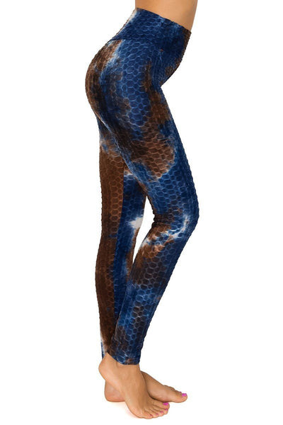 Imported S.M.L Women's textured high waist tummy control butt lift leggings 90% Polyester 10% Spandex Blue/Brown LIT