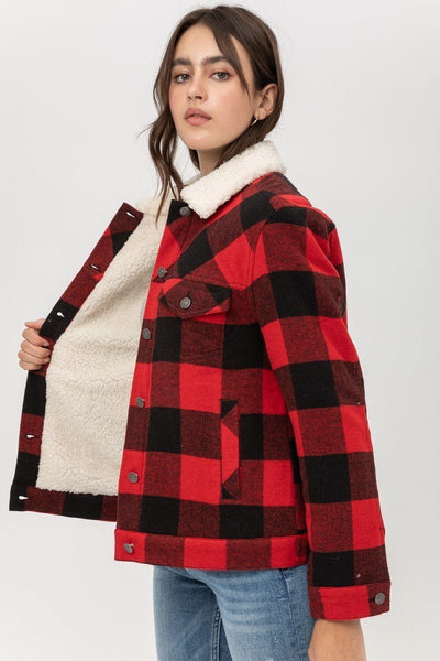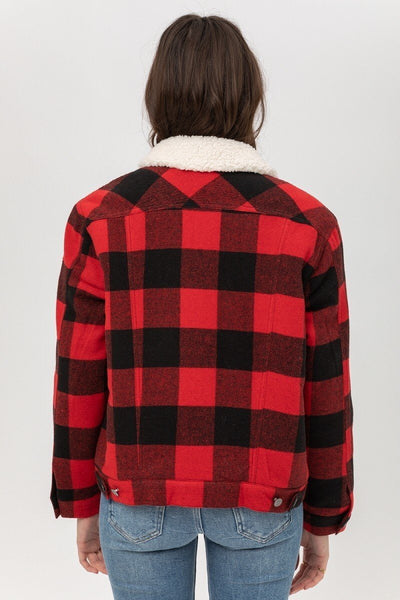 Imported S.M.L.XL WOVEN YARN DYE PLAID JACKET 95% Polyester 5% Wool Red LOV