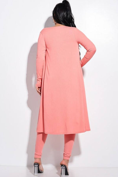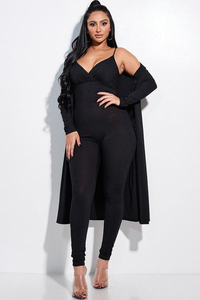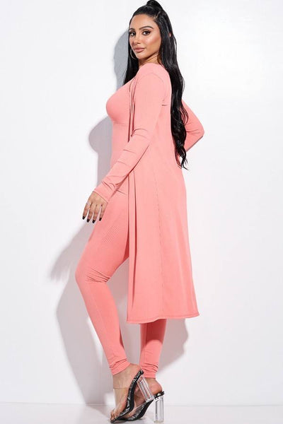 Made In U.S.A S.M.L solid rib knit spaghetti strap jumpsuit and duster two piece set 89% Polyester 11% Spandex New Peach MIS