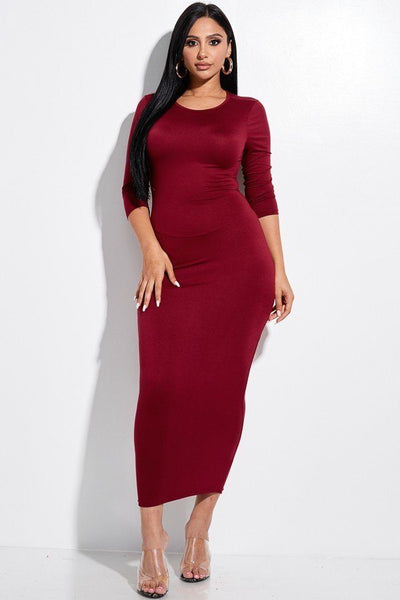 Made In U.S.A S.M.L solid 3/4 sleeve midi dress with back cut out 96% Polyester 4% Spandex Wine MIS