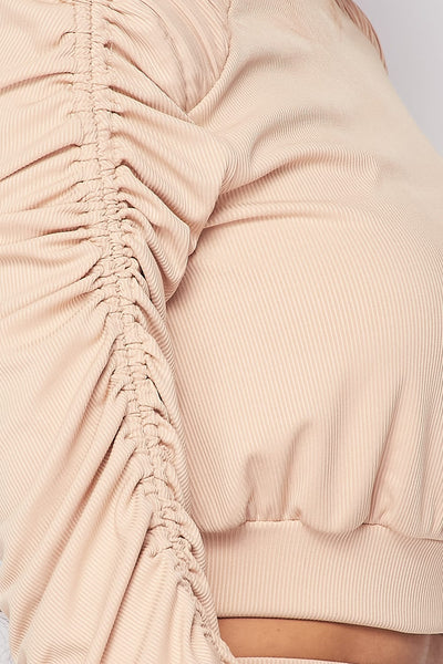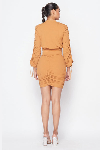 Imported S.M.L Ruched Long Sleeve And Skirt Set 100% Polyester Black PRI