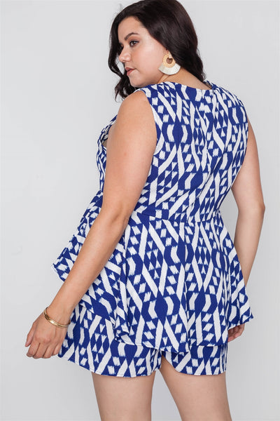Plus Size Off White Blue Sleeveless Tribal Print Top