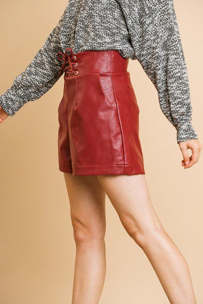 Vegan Leather High Waist Shorts with Pockets and Lace Up Waist