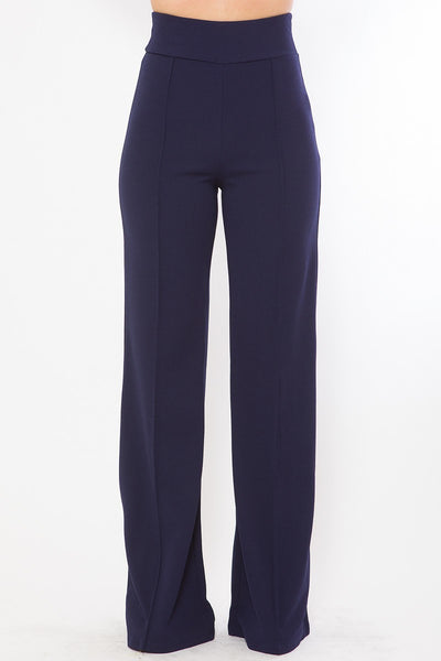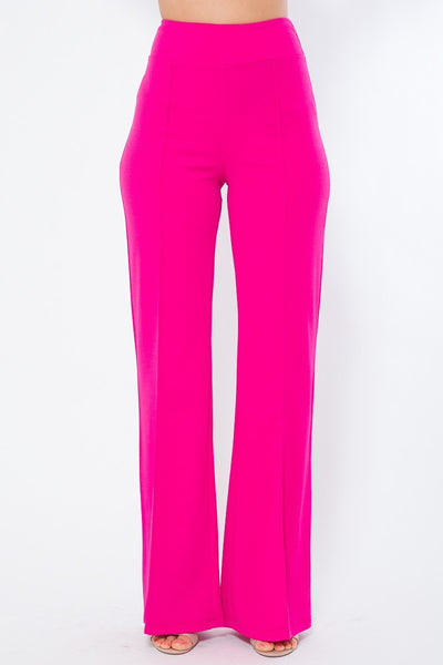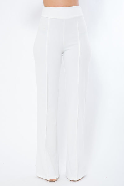 Perfect Fit Solid Pants. Front-line Flared Leg Design. Zipper on Back