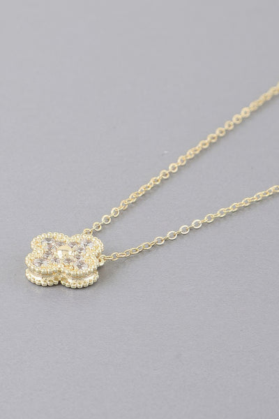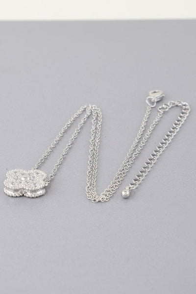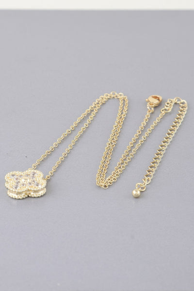 Elevate your jewelry collection with the Bejeweled Clover Pendant Necklace, a stunning accessory that effortlessly combines charm and sophistication. Crafted with attention to detail, this necklace features a beautifully designed rhinestone-encrusted clover pendant that radiates elegance and timeless beauty.