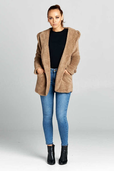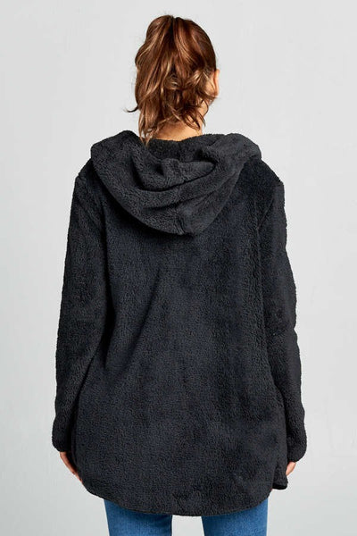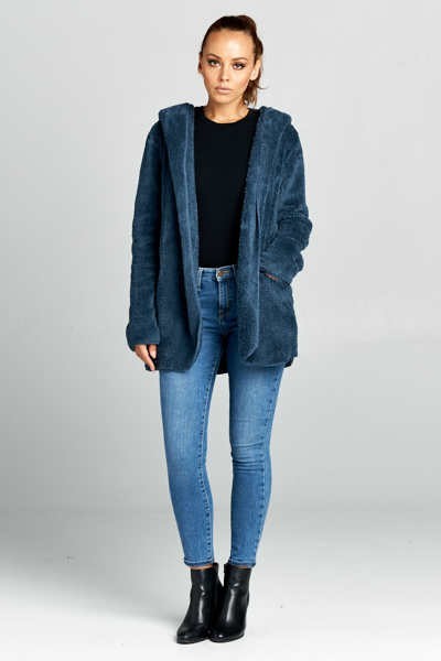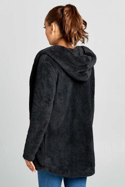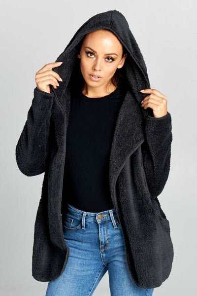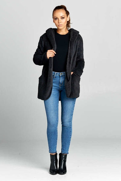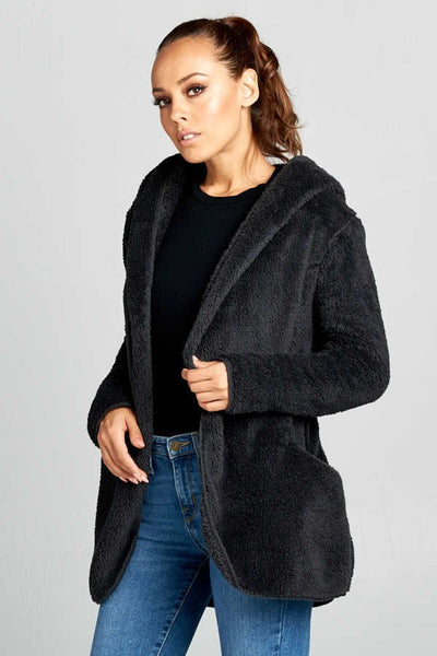 Made In U.S.A S.M.L Hooded fuzzy fur jacket 100% Polyester Black WIN